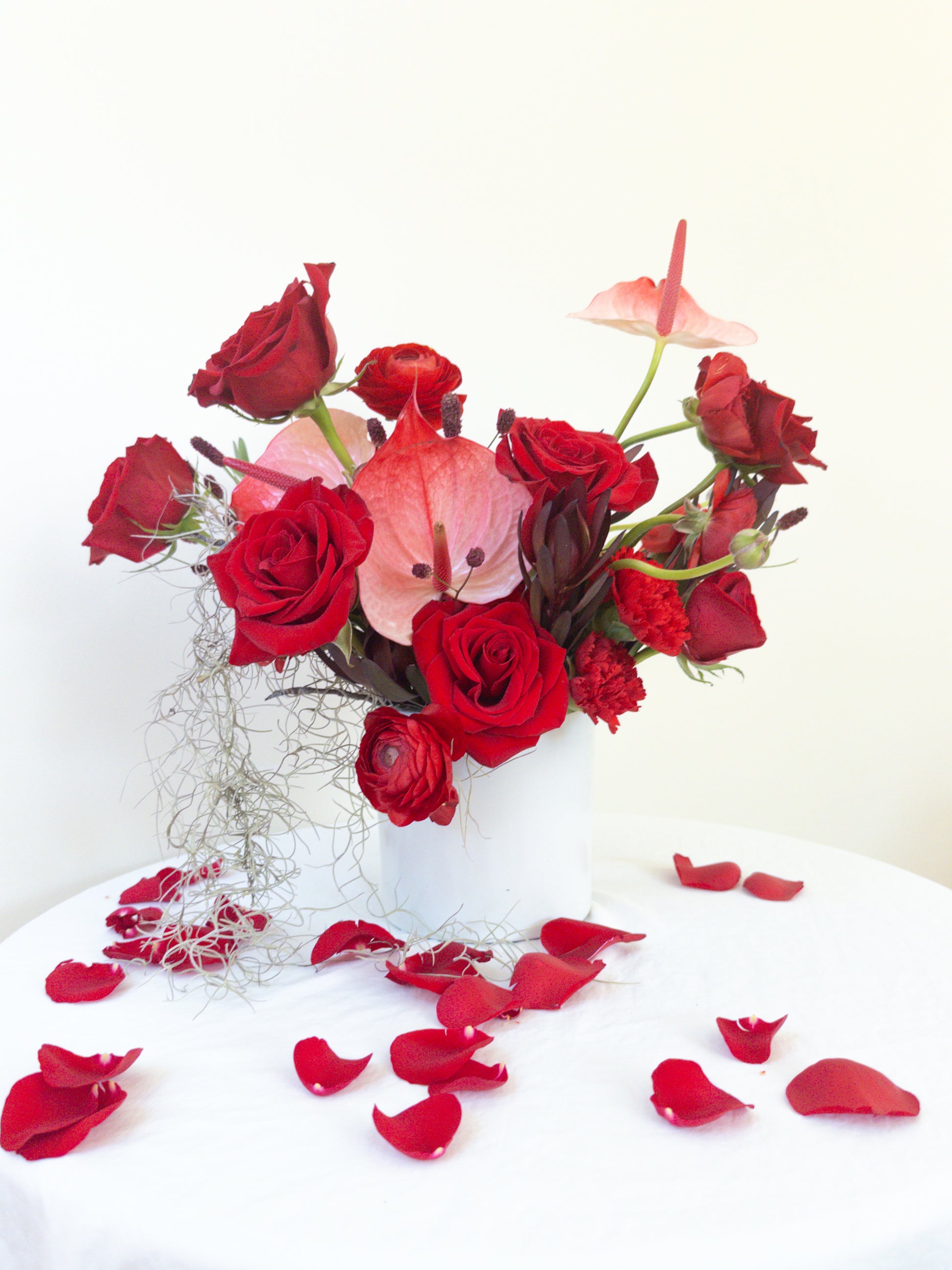 Flower and container substitutions may be necessary due to seasonal availability, weather conditions, or market fluctuations. In these cases, we thoughtfully select comparable blooms and vessels, always maintaining the original color palette and design vision, and using items of equal or greater value.